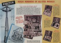 Price in 1951: Unlisted Adds the final touch of realism for such ERECTOR models as Cranes, Hoists, Derricks, Lift Bridges, etc. Ideal for sounding warning blasts or blowing signals. Can be used with any ERECTOR set but a 7-15 volt transformer is necessary. Kit includes whistle unit, central box, power leads and instructions.