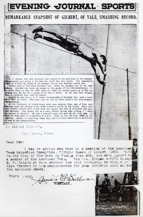 News report covering Gilbert's pole vaulting prowess